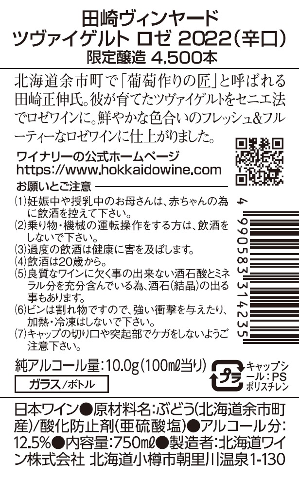 • 田崎ヴィンヤード ツヴァイゲルトロゼ 2022