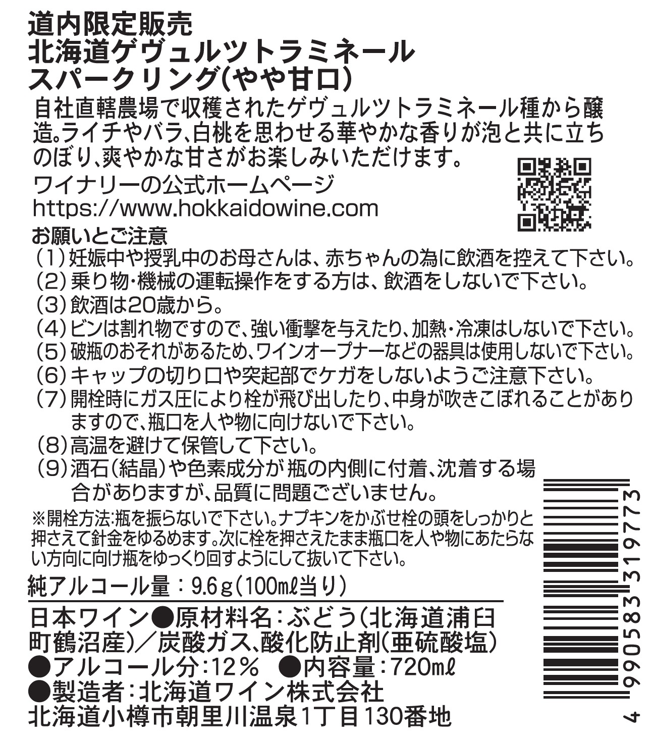 道内限定販売 北海道ゲヴュルツトラミネール スパークリング